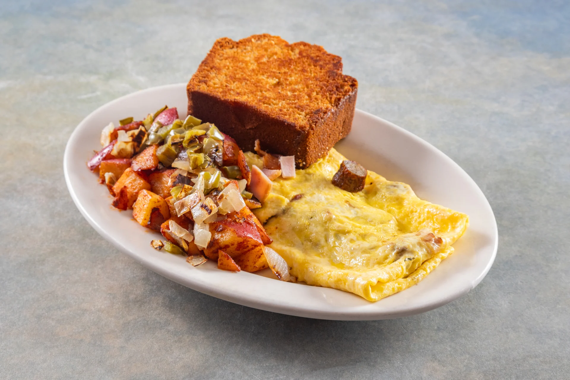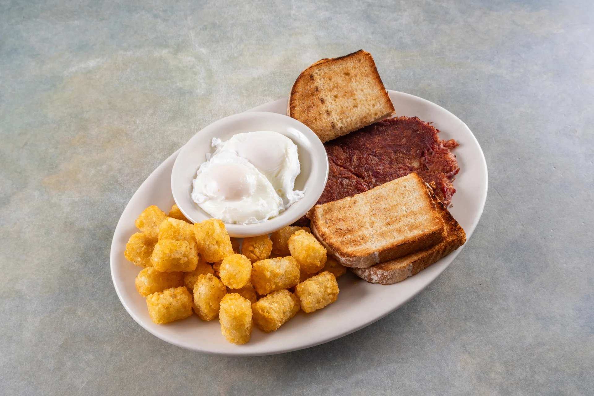 Two eggs, our homemade corned beef hash, & served w/ homefries or tots & toast.
