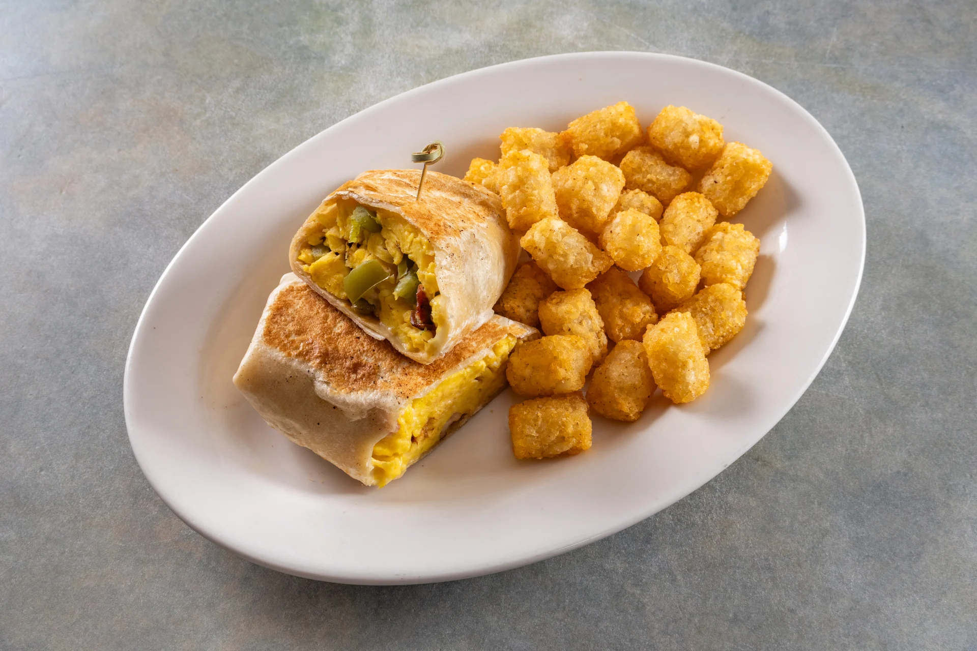 Served w/ homefries or tots, Salsa & sour cream on the side.